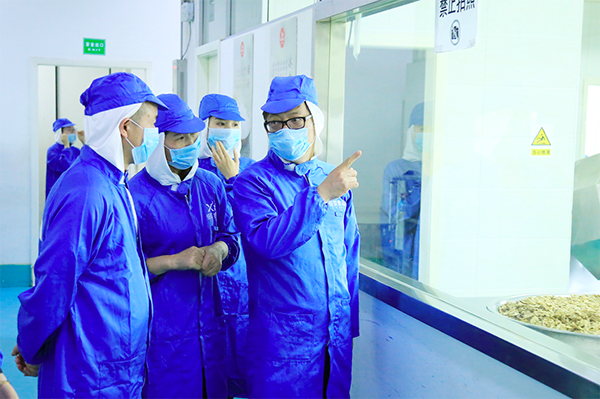 图为:金霞开发区领导们对产品不使用防腐剂的做法给于了充分的肯定