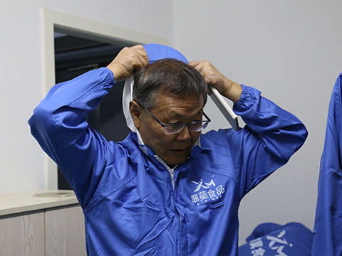 图为:何清华先生为参观细莫食品工厂而做准备。